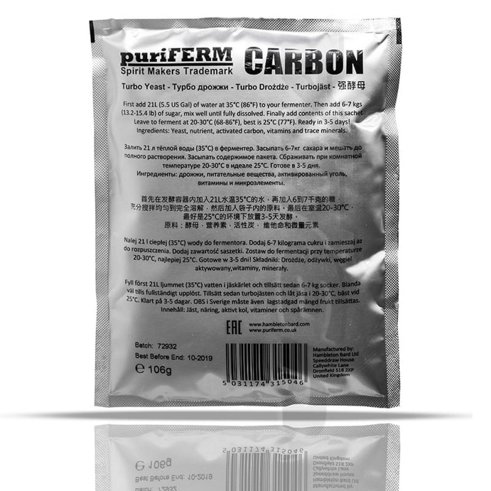 CheckoutActive dry alcoholic turbo-yeast C3 "Carbon" 120 gr. with a full range of macro and micro nutrient elements, ideal for fermenting the fruit and sugar base of any raw material (glucose sugar syrup). Turbo yeast C3 "Carbon" 120 gr. especially suitable for fast and high alcohol fermentation.