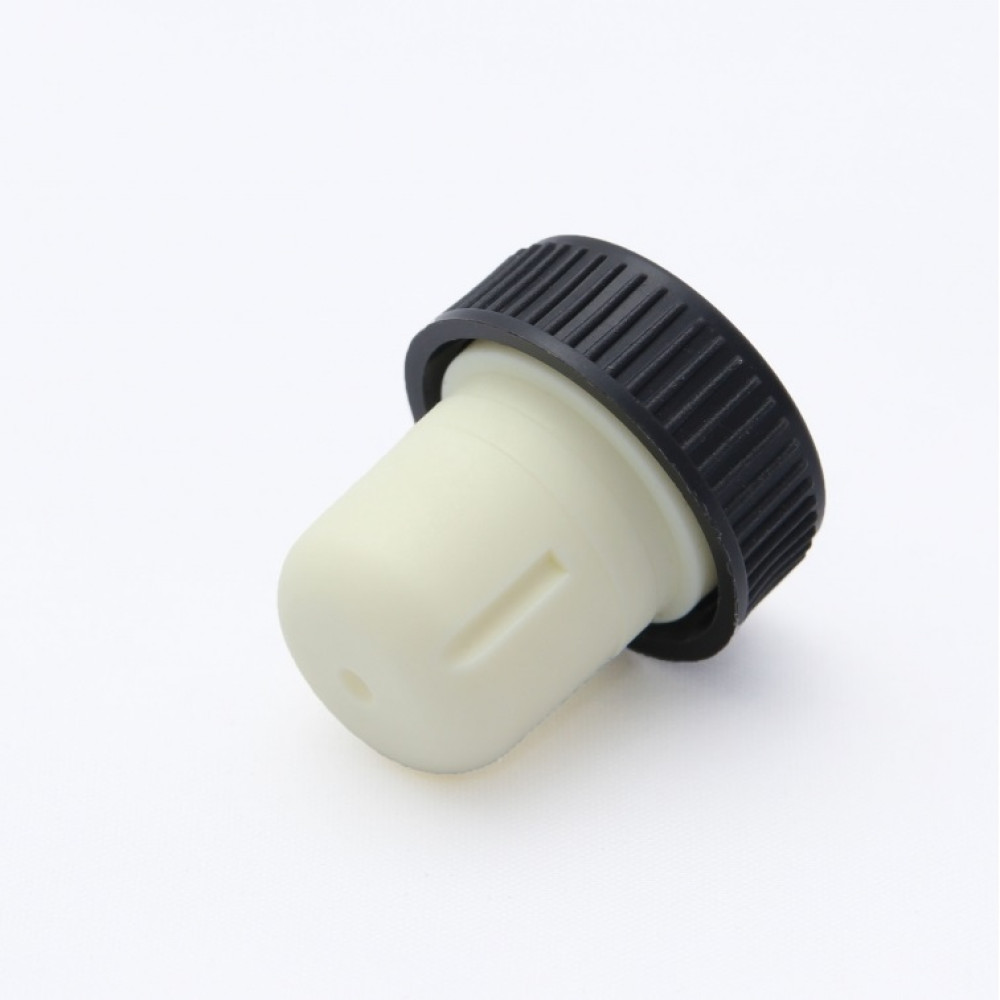 Plug T-shaped polymer, combined is completely made of foamed food polymer materials, resistant to alcoholic media. Its physical and mechanical characteristics exceed the cortical ones. It does not emit trichloroanisole, relieving the drink of extraneous tastes and odors, it is easily extracted from the neck of the bottle and also easily placed back, does not crumble, breaks, retains elasticity and elasticity, ensuring the tightness of the closure. Has the possibility of a long shelf life, without being affected by humidity. The main diameter is 19 mm, an additional ring with a diameter of 19.5 mm makes it possible to simultaneously facilitate the closure of the bottle and to give greater tightness. Two-component cognac jam for glass bottles of the most common calibers. Improved design with groove and sealing ring. The cork leg is hollow, which also makes it easier to cap. The bottle does not create excessive pressure, as in the case of a cork stopper. The polymer plug has another not unimportant advantage: it is not susceptible to shrinkage like a cork plug, it can be used again.
